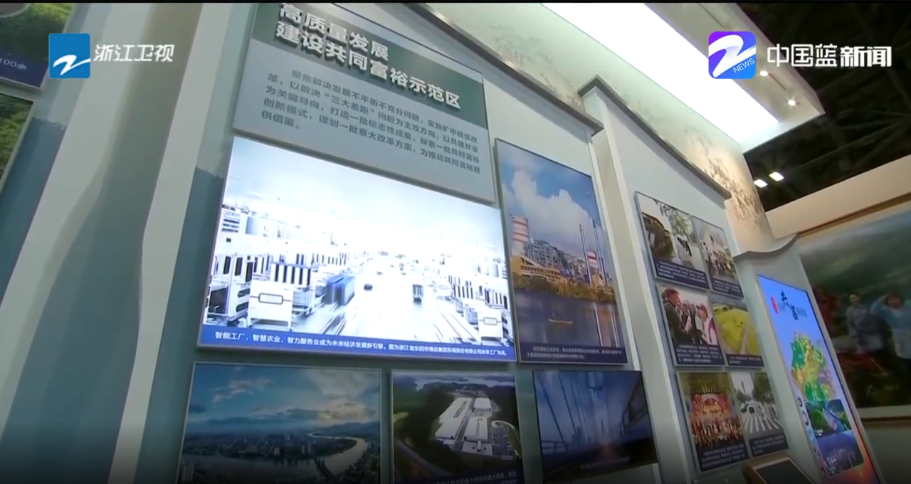 作為該展重要部分的浙江展區,緊扣“奮進新時代”主題,分為“忠實踐行‘八八戰略’ 奮力打造‘重要窗口’”“數字化改革引領系統性大變革”“跳出浙江發展浙江”“綠水青山就是金山銀山”“一體推進平安浙江法治浙江建設”“高質量發展建設共同富裕示范區”六個部分。東磁電池片七廠是全省首批“未來工廠”——電池片六廠的升級版,是全省智能工廠的代表,其照片位于“高質量發展建設共同富裕示范區”的醒目位置。