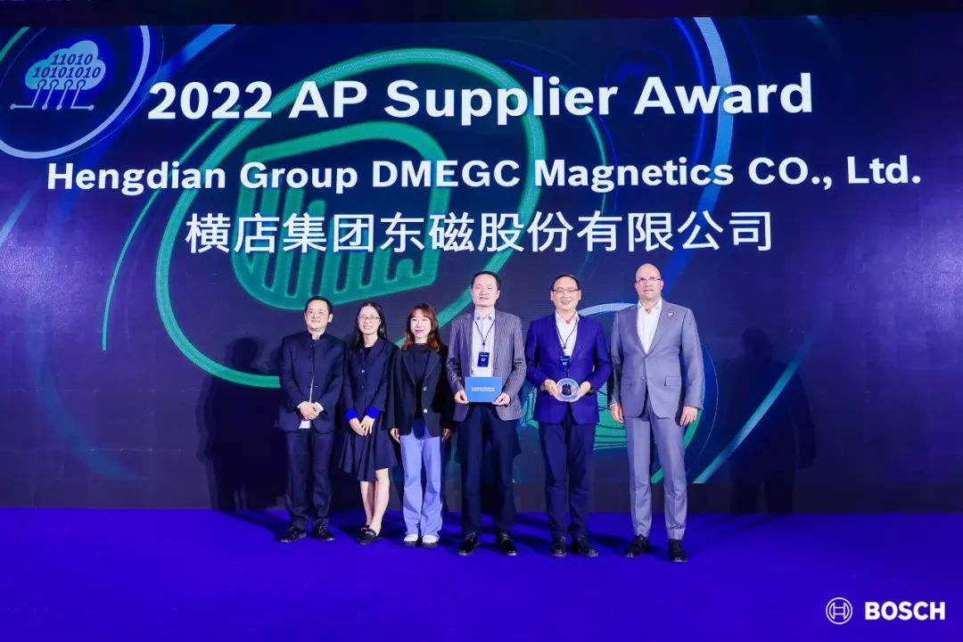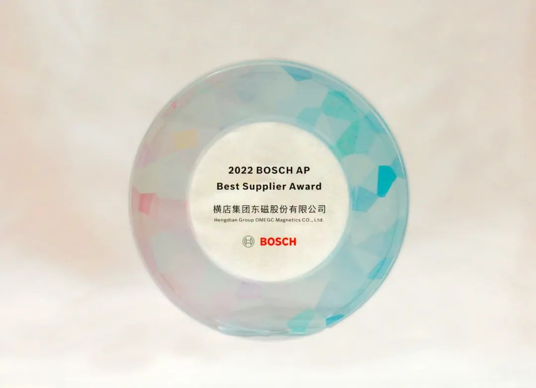日前,橫店東磁憑借多年來在磁性材料供應上做出的貢獻,被評為2022年度“博世亞太區最佳供應商”,是此次唯一獲此獎項的磁性材料企業,也是繼2019年獲博世全球最佳供應商大獎后的又一殊榮。