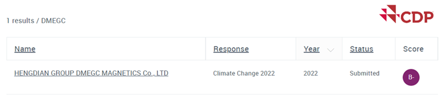 近日,在全球環(huán)境信息研究中心(Carbon Disclosure Project,簡稱CDP)發(fā)布的2022年全球企業(yè)評分中,橫店東磁榜上有名,獲得了管理級別“B-”的評級,是國內(nèi)光伏制造企業(yè)在該類評級中的最高級別。