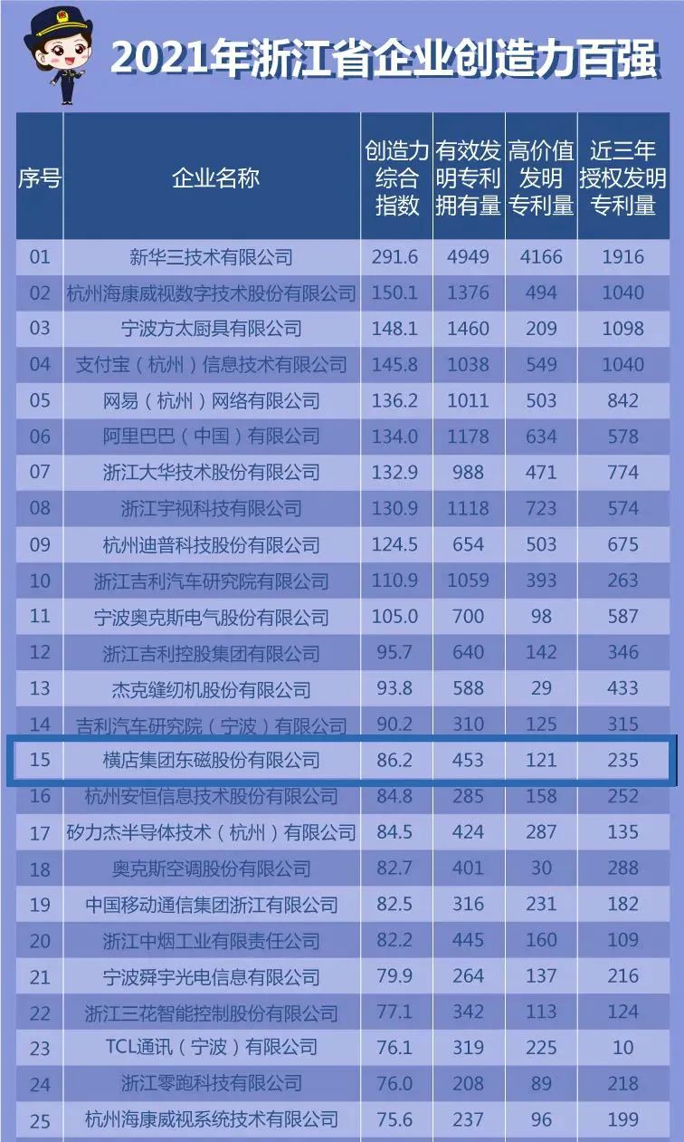 在世界知識產權日之際,浙江省市場監管局及金華市市場監管局,根據有效發明專利數量、高價值發明專利數量和近三年發明專利授權數量等指標,先后發布了省內和金華市內企業創造力排名。橫店東磁以其優秀的創新能力,在各類榜單中名列前茅。